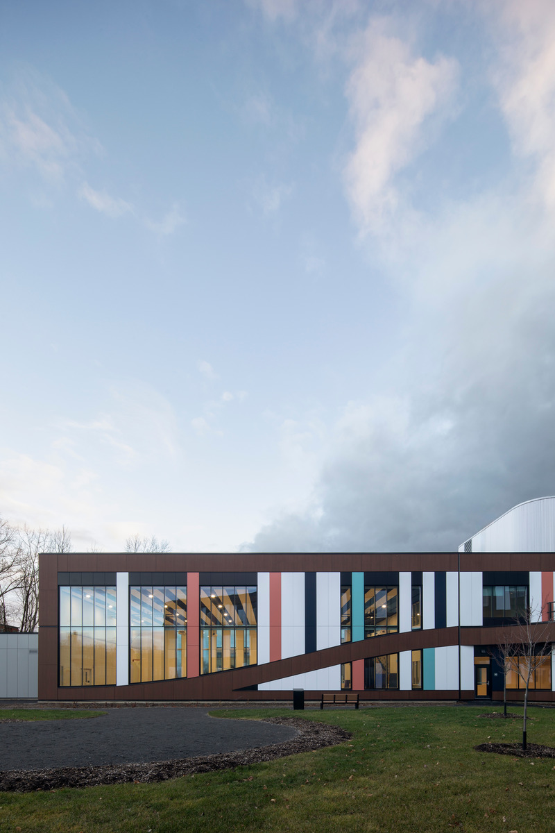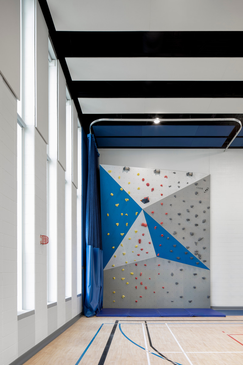 L’expérience du lieu ne s’arrête pas aux murs. Elle se prolonge dans des espaces extérieurs soigneusement composés, où l’architecture dialogue avec le paysage pour offrir aux jeunes un cadre d’épanouissement à ciel ouvert. Organisés en quadrants thématiques, les extérieurs offrent une variété d’usages et d’ambiances — de l’effort physique à la contemplation, de l’interaction sociale au retrait.