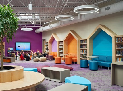 1st and 2nd grade classrooms surround a protected learning commons with access to abundant natural light and allow for supervision of the students by all teachers. These breakout spaces can be reconfigured and are flexible to support multiple learning styles.